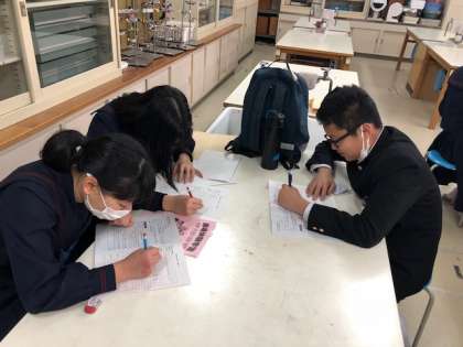 事業先から戻り、帰校報告を済ませた後は、リーダーが事業先での確認事項を再度清書用紙に記入しました。