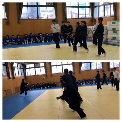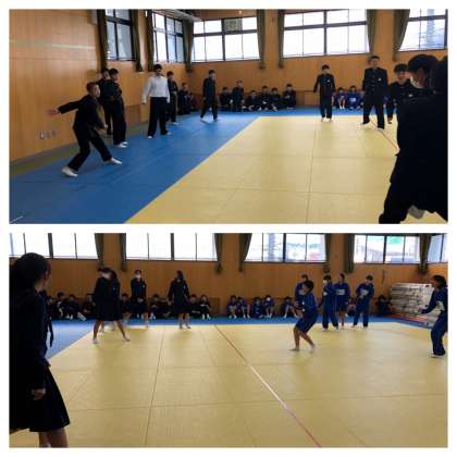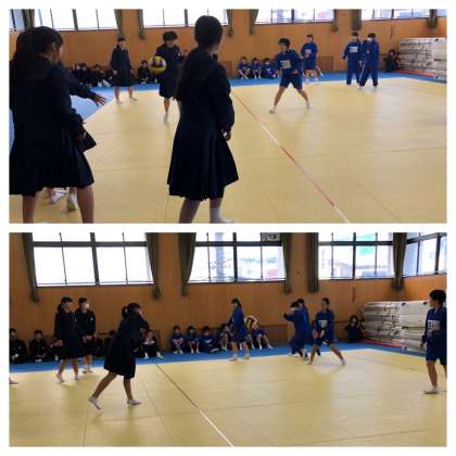 元気に登校している2年生2組VS3組でミニドッチボール大会をしました。
