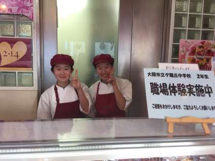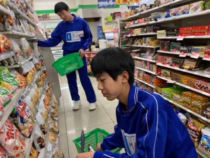 ケーキ屋では接客、コンビニでは品出しを体験。