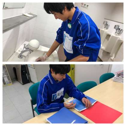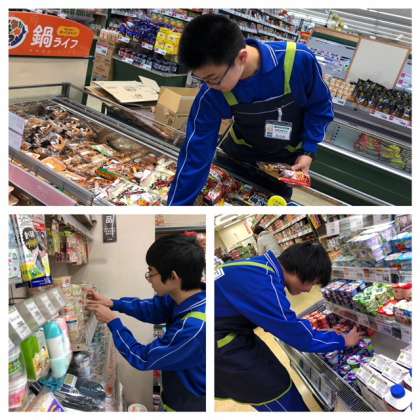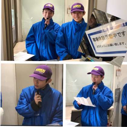 鉄道会社ではお客さんに向けての構内アナウンス、スーパーでは品出し、サービス業では清掃業務を体験中。
