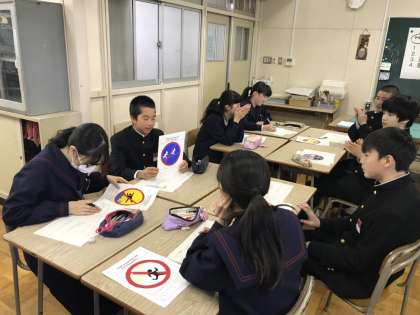 ピクトグラムの作品を、班で発表しました。