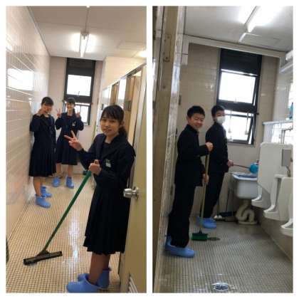 3年生で一般選抜に出願しない生徒たちは、学校に残り校内の清掃を行いました。