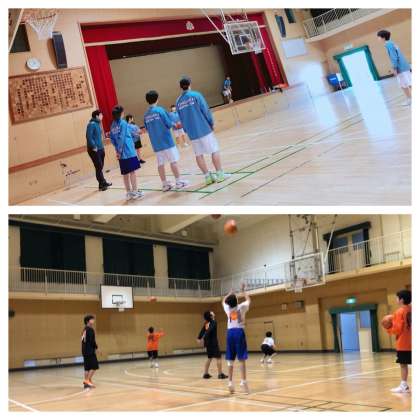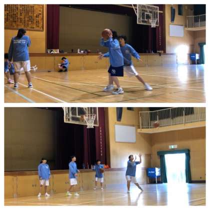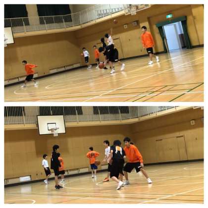 空中で体の向きを修正してシュートを打つ練習や、1対1の練習など個人技を磨きました。