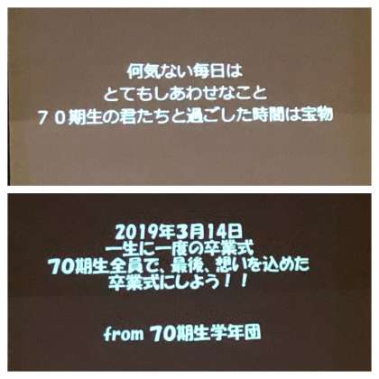 3年間を振り返りながら歓声や拍手が起こり、温かい雰囲気の中ムービーをみることができました。