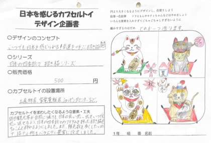 訪日外国人の方に向けて、「お土産として持ち帰りたくなるもの」「また日本に来たいと思ってもらえるもの」をテーマに、カプセルトイの中身のアイデアを考えています。