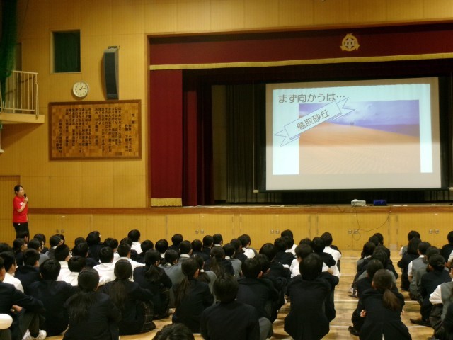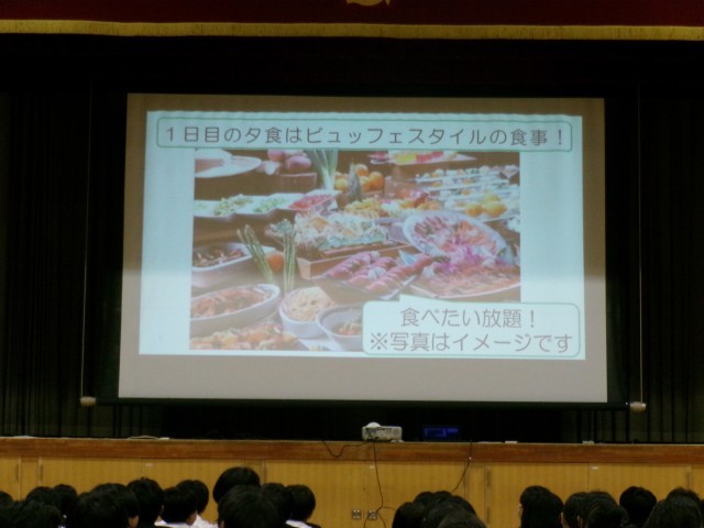 スクリーンに行程表や見学先の写真が映し出せれるたびに「おぉー!」という歓声が上がり、修学旅行への期待感が一気に高まったようです。
