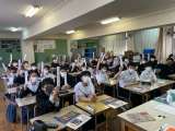 1年1組国語、2組英語の授業の様子です。英語はC−NETの先生の授業です。