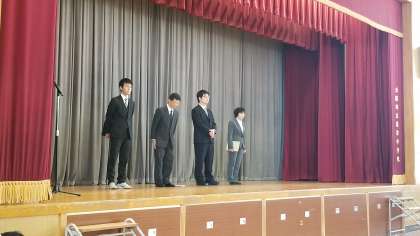 まず、竹内校長先生の着任式の後、新しく来られた先生の着任式を行いました。