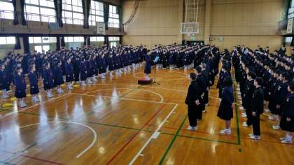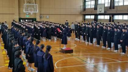 まず、在校生代表からの歓迎の言葉があり、次に新入生からの誓いの言葉がありました。早く中学校生活に慣れてくださいね。