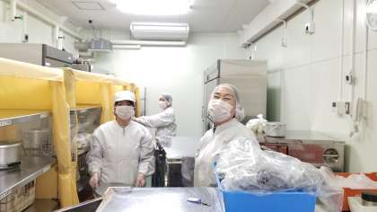 本日より給食が始まります。給食配膳員さん、味原小学校の調理員さん、よろしくお願いします。