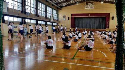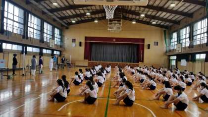 まず、学年全員が整列後、養護教諭より健康三原則(食事、睡眠、運動を充分に)について、保健室の利用の仕方、自分の健康に興味を持ってほしい、など保健に関する講話がありました。