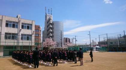 (上から)学年・クラス単位で集合します(桜も美しく咲いています)