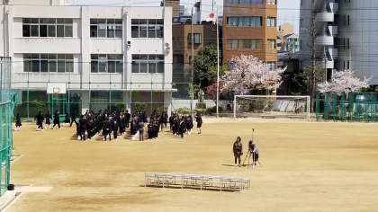 学級写真を撮る前に、職員写真をとりました。さらに、3年生教員だけの写真も撮りましたよ。