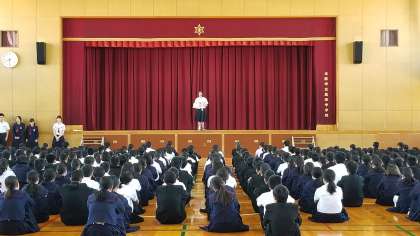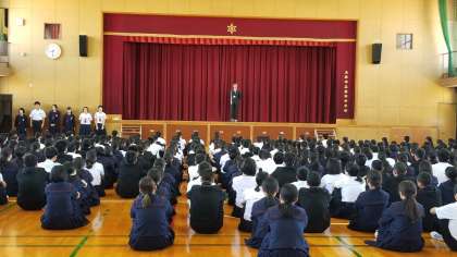 本日、長い10連休の後の全校集会がありました。登校した生徒の様子をみて、特に大きな病気やケガなくほっとしています。