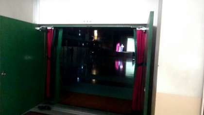 本日は高津中学校で土曜授業の一環として「芸術鑑賞会」を行います。早朝より劇団の方が来校し、体育館で舞台装置のセッティングをすすめておられます。ふだんの体育館の装いが一変し、本物の劇場に変わっています。現在はリハーサルの真最中。上演は午前10時を予定しています。保護者・地域の皆さまも鑑賞していただけますので、ぜひ3階体育館までお越しください。