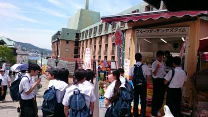 散策しながら食べ歩き。暑いのでソフトクリーム?や冷たいデザートが人気です。