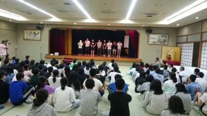 レク係の皆さんによる表彰式。優勝は4組さんでした。お互いに拍手で健闘を称えます。