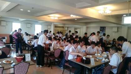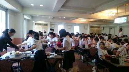 ご飯をよそったり、お茶を入れたり、自らが自然と行動できるところが、高津中の皆さんの良いところです。