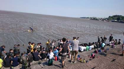 「潟スキー」に続いては、クラス対抗の綱引きです。皆さん、泥んこになるのが必至です。(現在準備してくださっています)