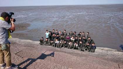 全体写真撮影の後、学級写真も撮りました。泥んこの顔から白い歯がこぼれます。(上から)1組、2組です。
