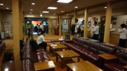 純和風の温泉旅館です。ほのかに(いわゆる)硫黄の香りを感じます。この後、夕食、温泉地獄巡りナイトツアーと続きます。