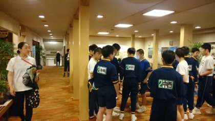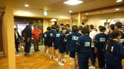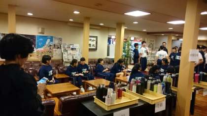 2日目最後の活動「雲仙地獄巡りナイトツアー」に出発します。旅館のロビーに皆さんが集まってきます。どんなツアーか、ワクワクします。