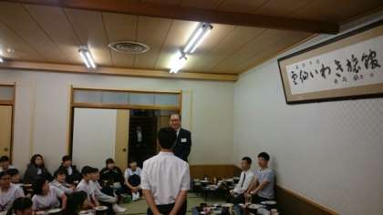 朝食後に退館式を行いました。お世話になったいわき旅館さんは、明治時代に外国人の方々をもてなすために開業されたとのこと。(歴史の重みを感じます)