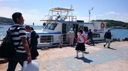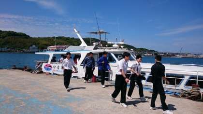 船が船着き場に戻ってきました。楽しみにしていたイルカにも会えました。皆さん大満足の表情です。