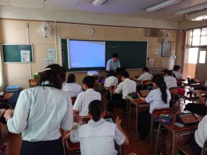 タブレットを使って、理科の早押し問題に挑戦。ICT支援員さんも、kahootで、積極的に問題に挑みます。
