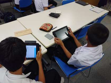 来週の校外学習に向けて、ICT支援員さんから、タブレットの講習がありました。活動の様子をタブレットでたくさん記録できるといいですね。