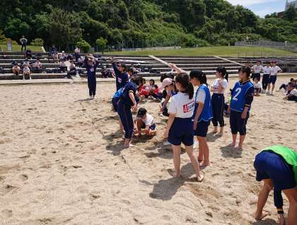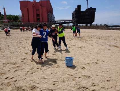 8人のチームワークだ 二人三脚