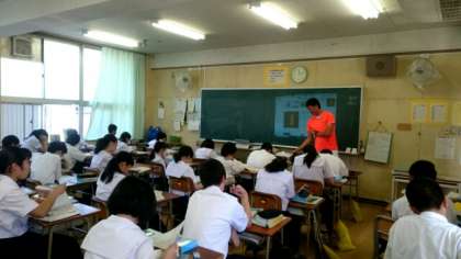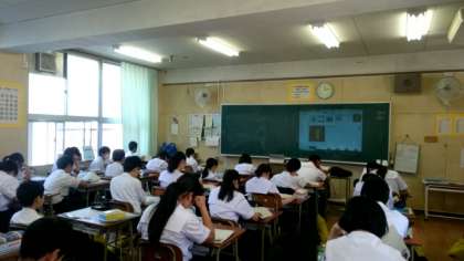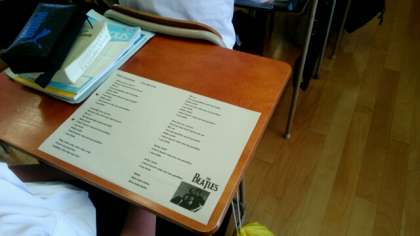 1年生の教室から楽しげな曲が聞こえてきます。英語の授業でビートルズの「Hello Goodbye」を聴いていました。今もなお歌い継がれる名曲の1つ。比較的歌詞が簡単なので1年生の学習にピッタリです。1年生の皆さん、いろんな形で英語に触れていきましょうね。