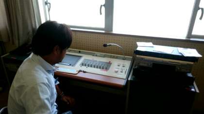 (上から)先生方が放送室で準備されています