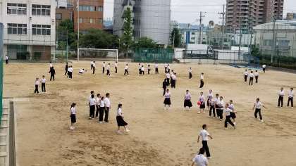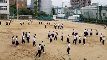 テスト明けの昼休み、元気いっぱい遊んでいます。おや?先生もまじって楽しんでますね。