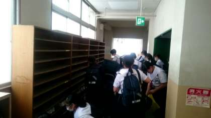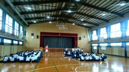 (上から)明日の準備物を持って体育館に集合します