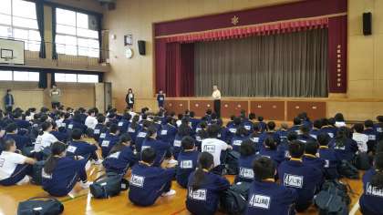生徒の司会で帰校式が始まりました。校長先生からは、行動が早く時間に余裕ができたことはよかったです。ひとの話を聞くときの態度はこれからの課題ですねと、はなしがありました。