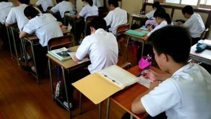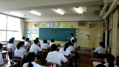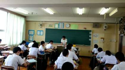 3年生数学の授業で「平方根」を学習中です。2乗したらaになる数のことを「aの平方根」と言うそうです。(たとえば9の平方根は±3)中学校の数学では、けっこうつまづきやすい単元とのこと。先生もくりかえし丁寧に説明されていました。3年生の皆さん、納得するまで何度も復習してくださいね。