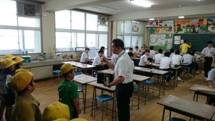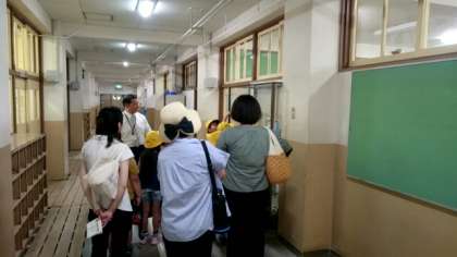 真田山小学校2年生の皆さんが「校区たんけん」で高津中に来てくれました。教頭先生の案内で、校舎1階を「たんけん」します。小2の皆さんは、教頭先生のお話しを熱心に聞き、とっても良い子たちでした。