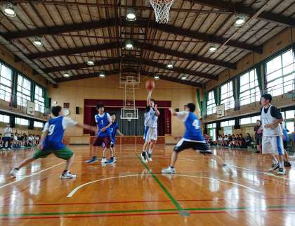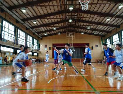 高津中学の体育館で、練習試合です。桜宮・東生野中学校に来校してもらい、公式戦を彷彿させるような白熱した試合展開です。
