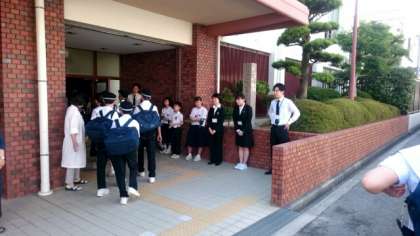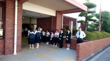 毎朝のあいさつ運動に、教育実習の先生方も参加しています。1日を気持ちよくスタートできるよう、笑顔であいさつを交わします。教育実習期間中に、教科指導以外にも(大学ではできない)さまざまな活動を体験してくださいね。