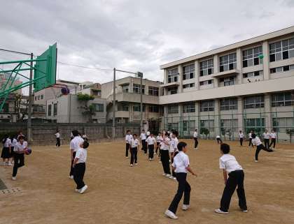 少し雲がでたおかげで涼しくなりました。グランドは大にぎわいです。バレーボールやバスケットボールで元気に遊んでいます。