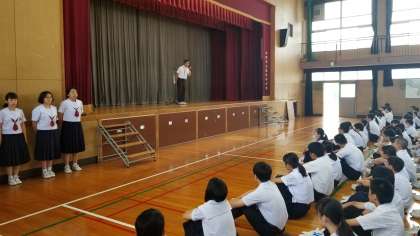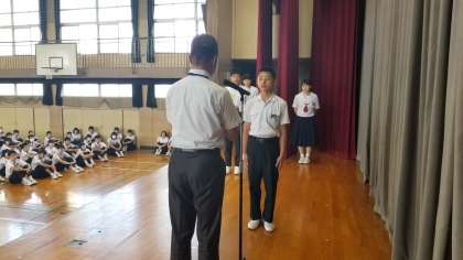 また、男子バスケットボール部、女子バスケットボール部の伝達表彰を行いました。大きな大会に向かって頑張ってください。