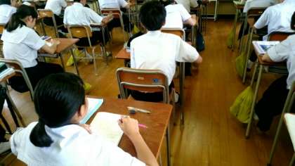 現在、3年生では「平方根」の計算を学んでいます。計算をマスターするためには、なんといっても繰り返し練習するのが王道。先生から出題されるさまざまなパターンを1つづつクリアしていきます。3年生の皆さんは、今日も多くの練習問題を解きながら、解法のコツをつかんでいました。