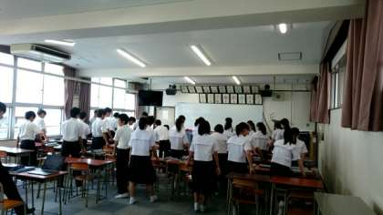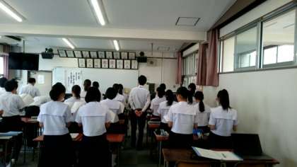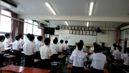 2年生音楽で歌唱指導が行われています。課題曲は「翼をください」。1970年代のフォークソングで文化庁の「日本の歌100選」にも選定された名曲です。先生の美しいピアノ伴奏にあわせて、皆さんが気持ちをこめて歌います。この後、実技テストがあるとのこと。精一杯、大きな声でがんばってくださいね。
