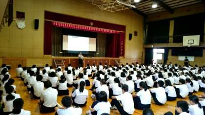 楽しみな夏休みまであと3週間。長い休みの間、生徒の皆さんが安全に過ごせるよう、天王寺警察の方に「安全講話」をしていただきました。今回はスマホ・SNSに関するトラブルについて、お話(注意)がありました。DVD視聴を通して、甘いことばを使って個人情報や金銭を奪い取る手口を学びます。くれぐれも事件や被害に遭わないよう、気をつけてくださいね。