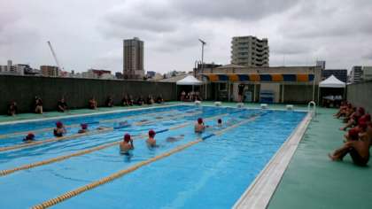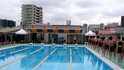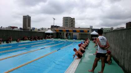 体育科で水泳の授業がスタートし、2年生の皆さんがプールでの初泳ぎにのぞみました。入念に準備運動を行い、身体に水をかけた後、順に入水していきます。今回は(初回ということもあり)軽めのメニューでしたが、次回以降しっかり泳いでくださいね。