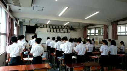 音楽室から心地良い歌声が流れてきました。2年生の皆さんが音楽の授業で、唱歌「夏の思い出」を歌っています。「夏が来れば思い出す はるかな尾瀬 とおい空‥」ではじまるこの歌は、まさに今の季節にピッタリですね。皆さん、情景を思い浮かべながら気持ちをこめて歌っていました。
