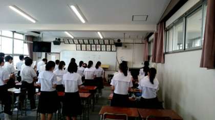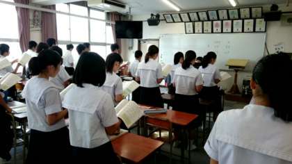(上から)歌唱指導時は、全員が起立して歌います