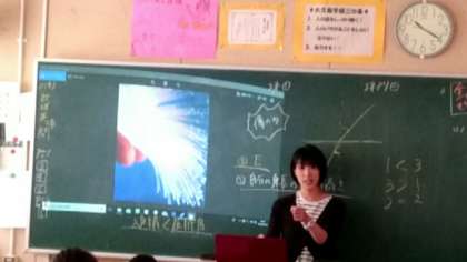 1年生理科で「光の屈折」を学習しています。光の入射角や反射角など数学の学習と関連がある内容で、なかなか難しいですね。担当の先生は、皆さんが理解しやすいように、たくさんの画像や動画を駆使してわかりやすく説明されていました。お家に帰ったらぜひ復習し、マスターしましょうね。