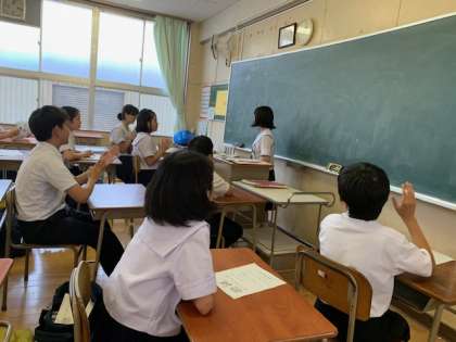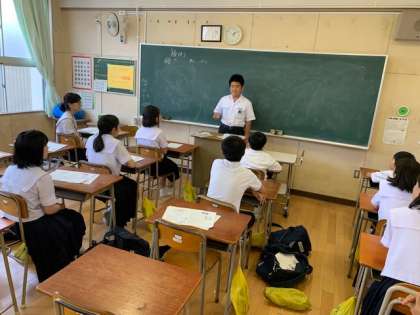 夏休みに大阪市内の中学校と合同で行う防災研修会の事前指導を行いました。参加するのは3年生5名、2年生4名、1年生5名の計14名です。